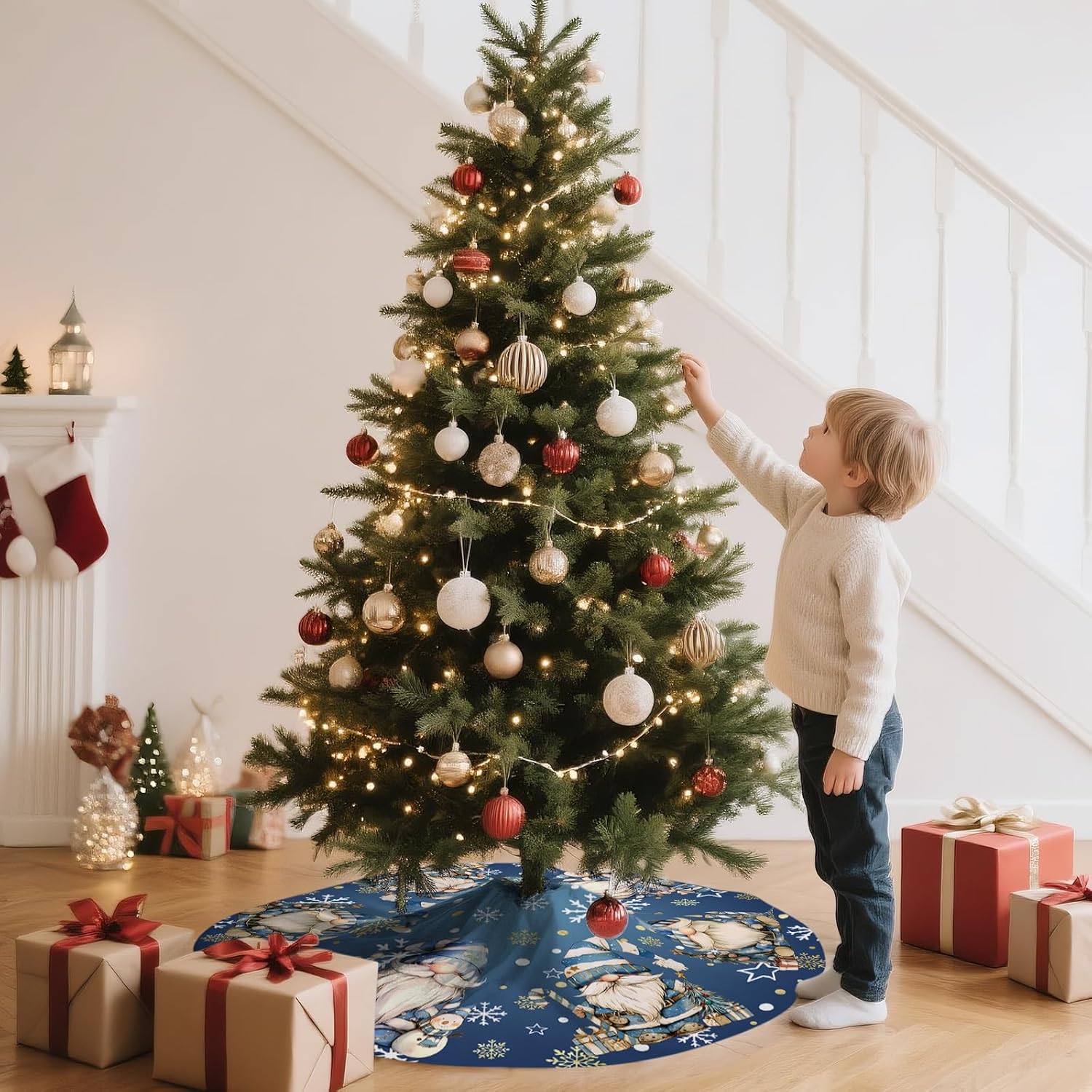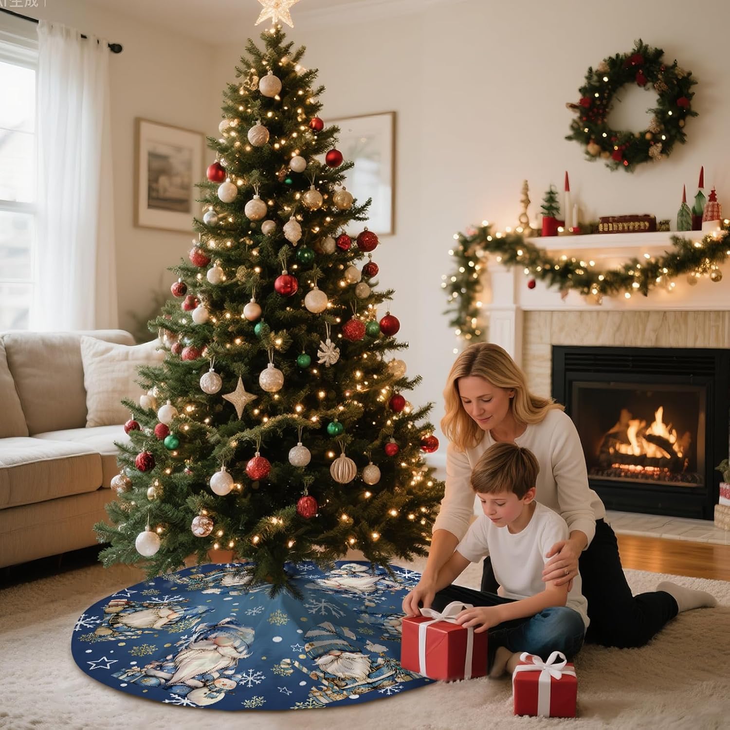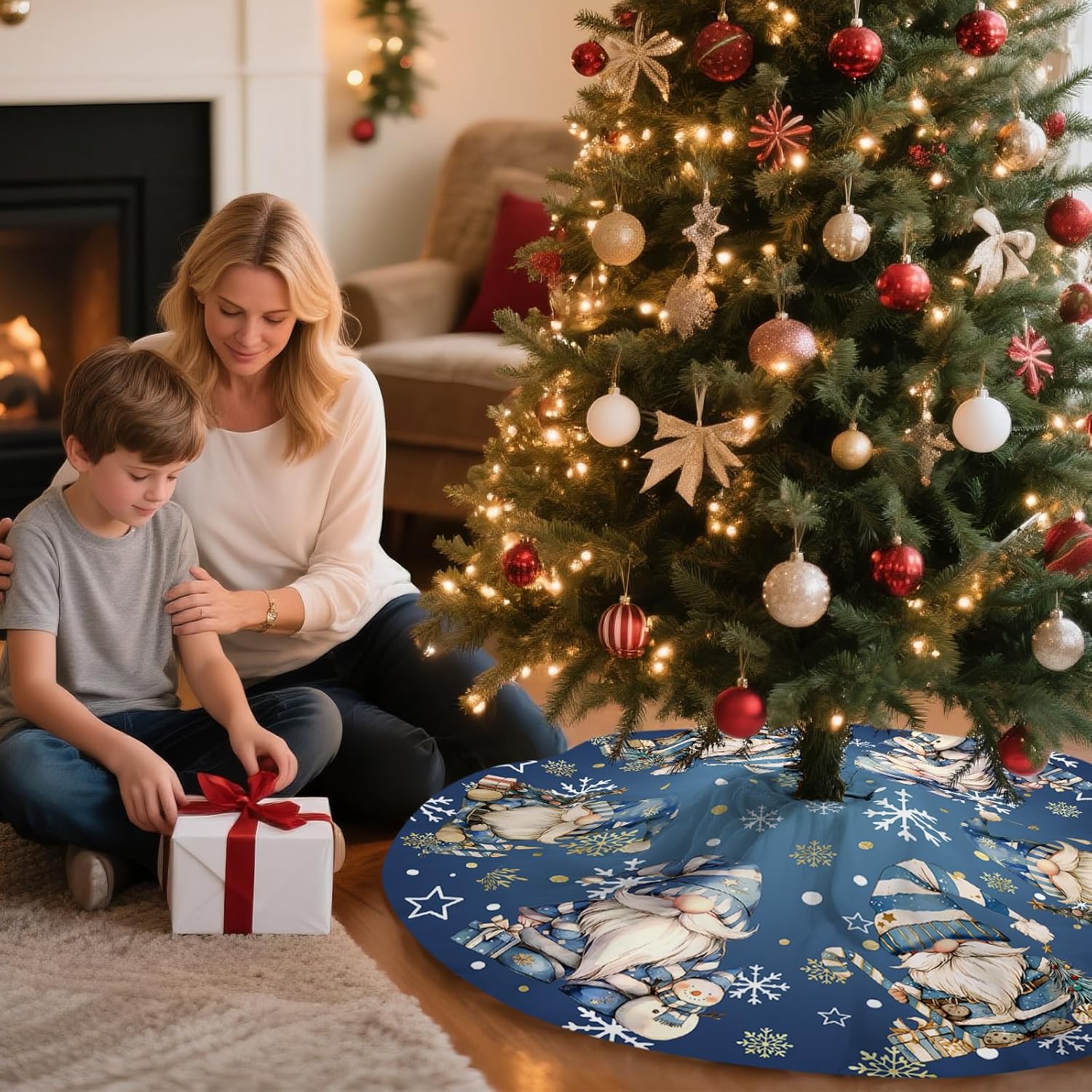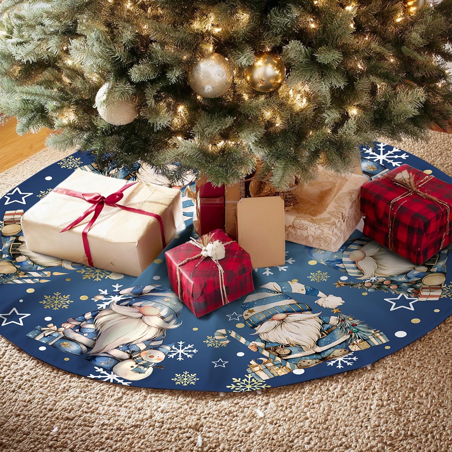 Blue Gnomes Christmas Tree Skirt Gnomes Snowflaks Christmas Decorations House Decor Winter Holiday Party Xmas Tree Skirt 36 inches
