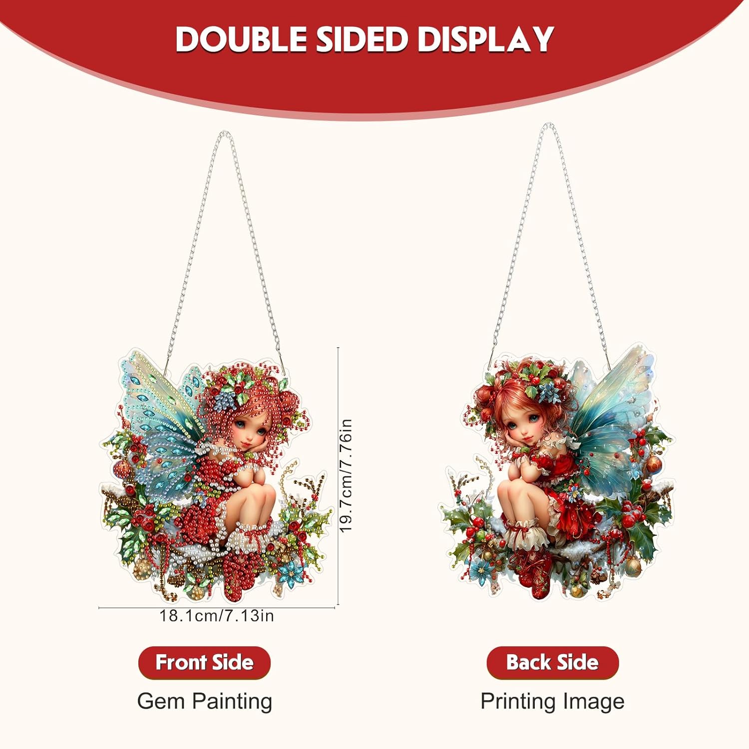 Hanging Diamond Art Kit for Adult, Christmas Angel, 5D Special Shaped Rhinestone Diamond Painting Ornament, Christmas Fairy, DIY Acrylic Diamond Art Painting Window Pendants Home Garden Wall Decor