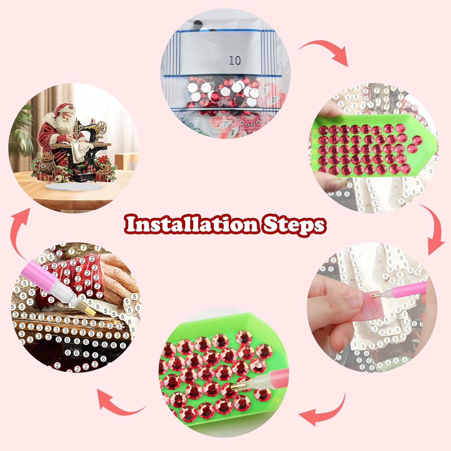Diamond Art Kits for Adults, Santa Claus with Sewing Machine, Special Shaped Rhinestone Diamond Art Christmas Ornaments, Santa's Domestic, Diamond Painting Desktop Ornament Gem Art Crafts Home Decor