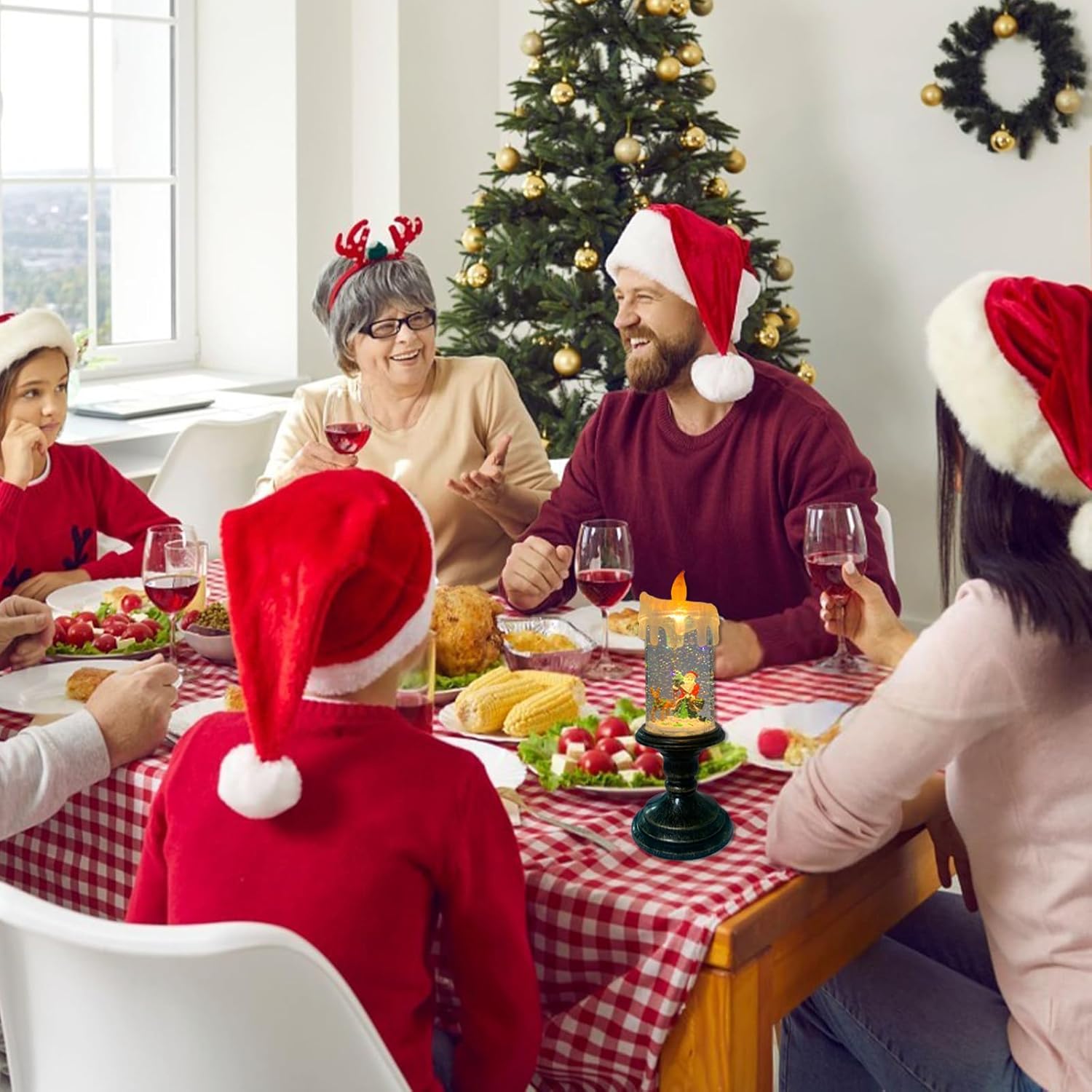 Flameless Snow Globe Candle Light Christmas Santa Decoration with Swirling Water & Glitter, Spinning LED Candles for Home, Tabletop, Holiday Decor