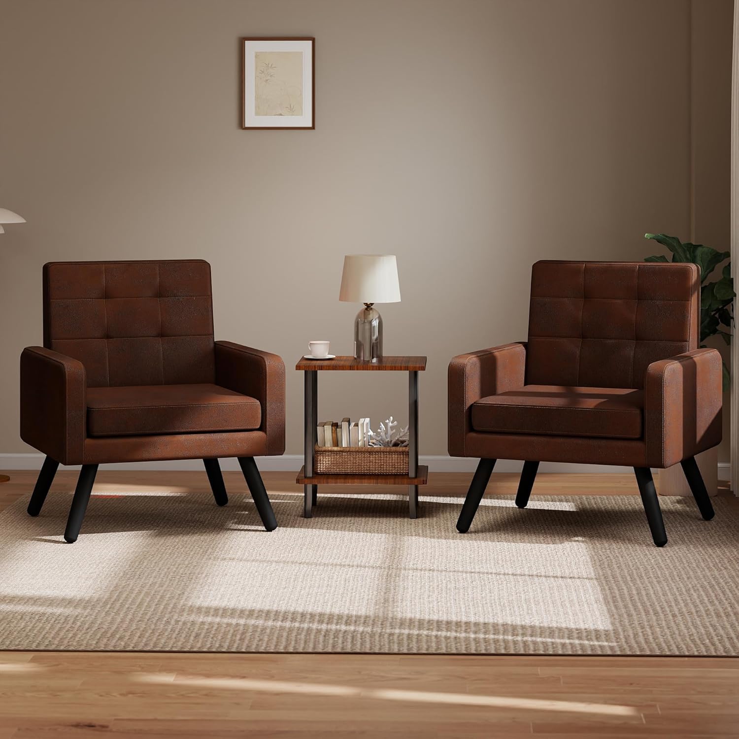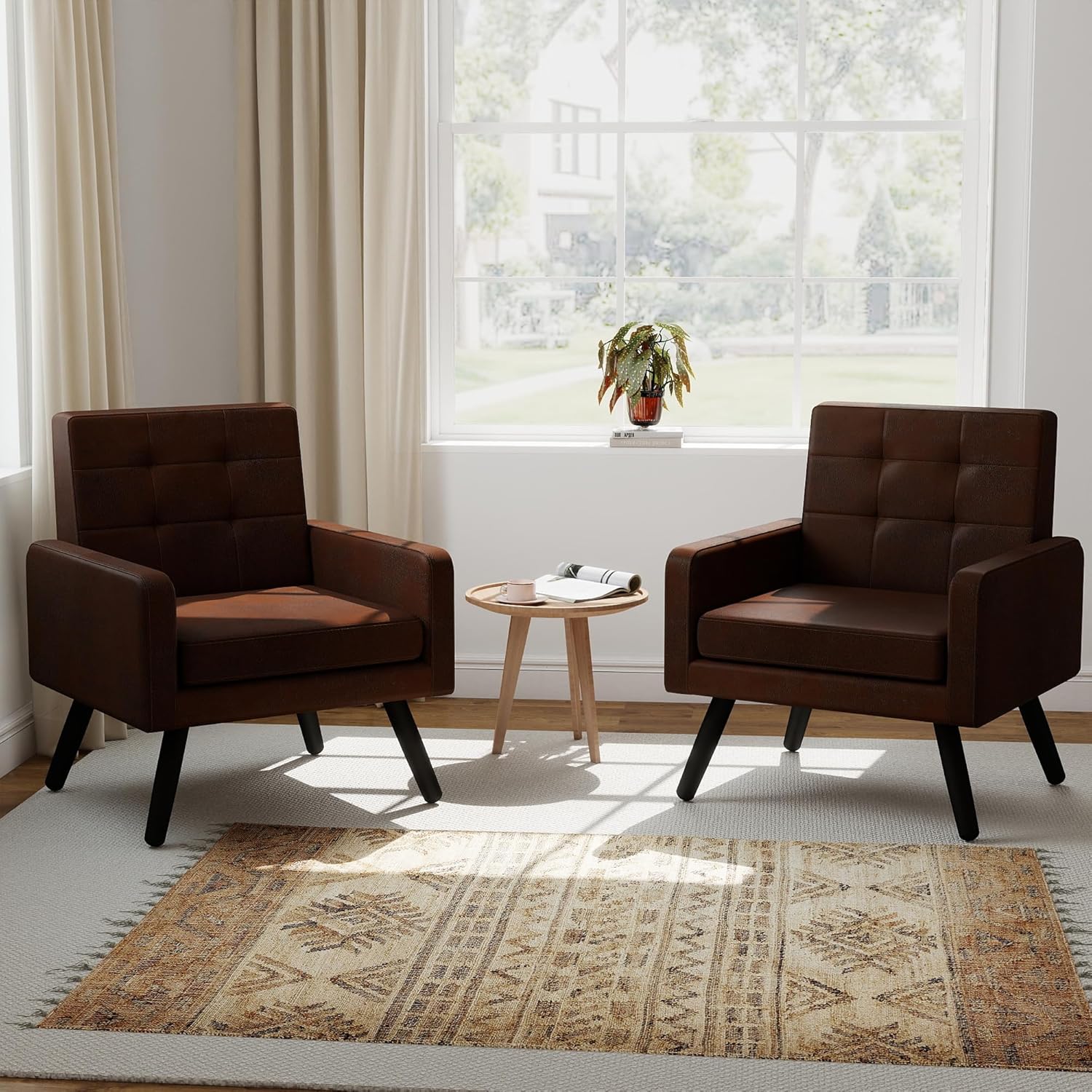 Kromax Mid-Century Modern Accent Chair Set of 2 for Living Room, 496 Lb. Weight Capacity, Dual Armrests, Comfy Extra Large Seat, Timeless Style Perfect for Reading & Relaxing, Bronze