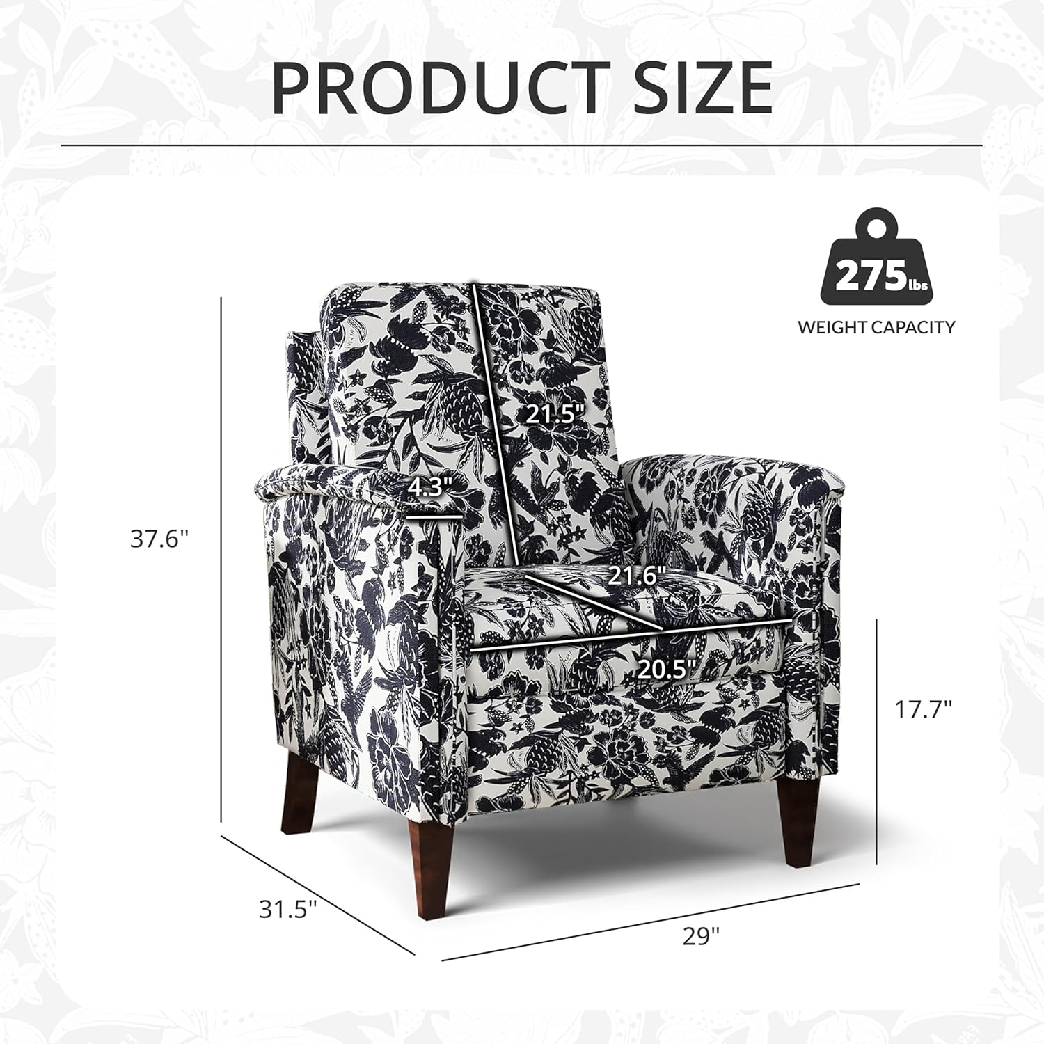 - Special Feature : Arm Rest, Breathable Linen Upholstery, Charming Floral Pattern, Gently Curved Armrests, Solid Legs