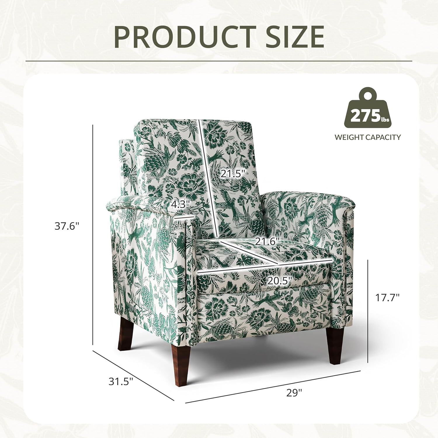 - Special Feature : Arm Rest, Breathable Linen Upholstery, Charming Floral Pattern, Gently Curved Armrests, Solid Legs